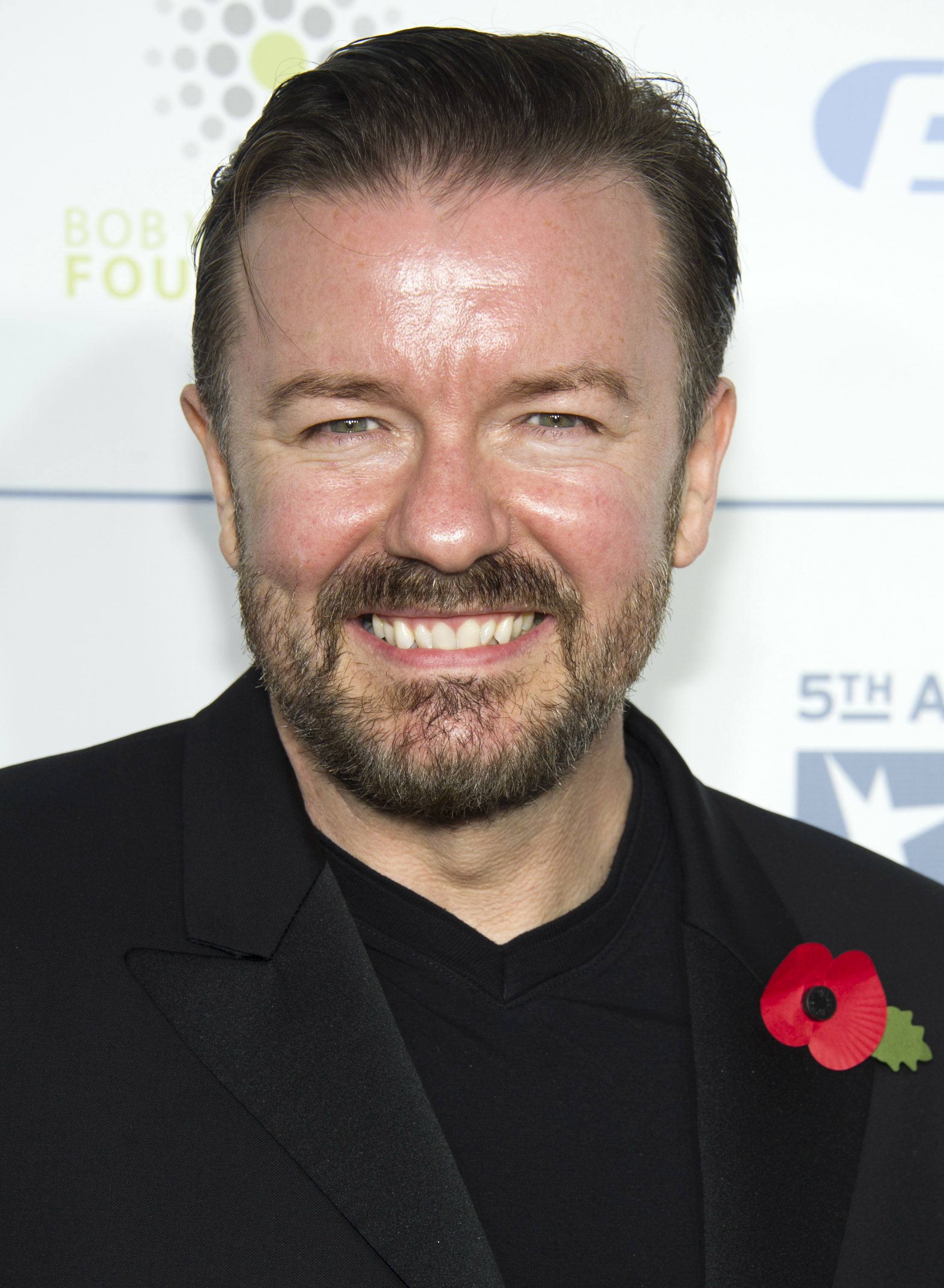 In this Nov. 9, 2011, file photo, Ricky Gervais attends the New York Comedy Festival's Stand Up For Heroes benefit in New York. The Hollywood Foreign Press Association announced through Twitter Wednesday, Nov. 16, that Gervais will host the ceremony in January. The 69th annual Golden Globe Awards will be held Jan. 15, 2012. (Photo credit: AP photo by Charles Sykes, file)
