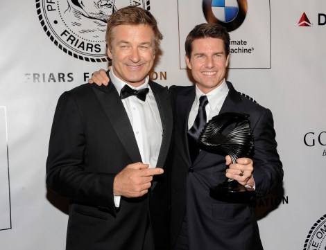 Actor Alec Baldwin and honoree Tom Cruise pose together at The Friars Club and Friars Foundation Honor of Tom Cruise at The Waldorf-Astoria on Tuesday, June 12, 2012, in New York. (AP photo by Evan Agostini/Invision/AP)