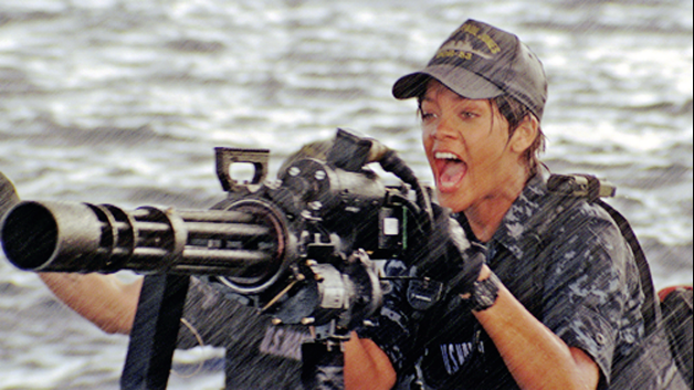 Sadly, too few of these moments can be found, and instead we’re bombarded with patronizing Greatest Generation and injured veterans shout-outs. When that’s not enough to make you giggle inappropriately, there’s even a scene where the singer Rihanna, playing a petty office, rails against the machine with a rather underwhelming turret gun. She’s not bad in the bland role, but seeing her try to attack a deadly enemy ship with what amounts to a BB gun is hilarious in all the wrong ways.
