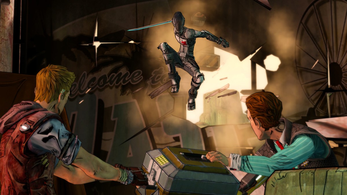 In “Tales from the Borderlands,” set after the events seen in Borderlands 2, Tales from the Borderlands is about Rhys, a Hyperion company man looking to become the next Handsome Jack, and it’s also about Fiona, a Pandoran con artist out to score the biggest of all swindles. (Photo credit: Telltale Games)